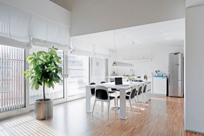 3、一般居室中廚房多外接陽(yáng)臺(tái),于是不少人將灶具移至陽(yáng)臺(tái),在廚房的一側(cè)定做一排櫥柜,余下的空間就可以作為簡(jiǎn)單的餐廳了。