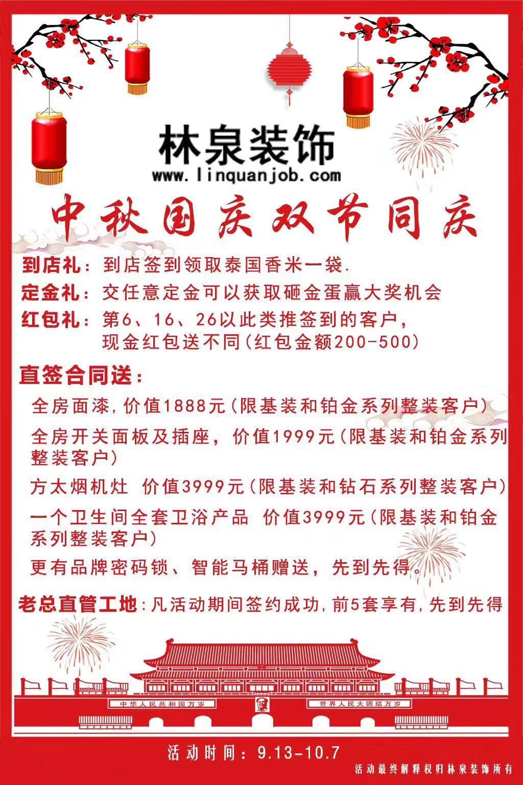 您的位置:首頁 >> 裝修新聞 >>  林泉裝飾  >> 迎中秋—慶國慶鉅惠大酬賓