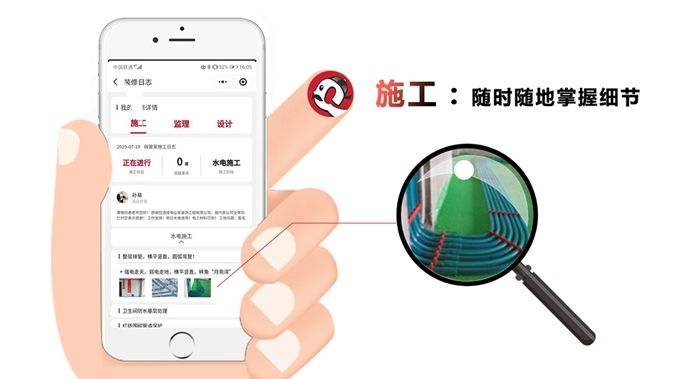 1. 施工過程,全面掌握——工地無需現(xiàn)場盯守,隨時掌握施工動態(tài)。在施工過程中,業(yè)主隨時通過后臺查看工地施工的各項工藝細節(jié),更省事、更放心!