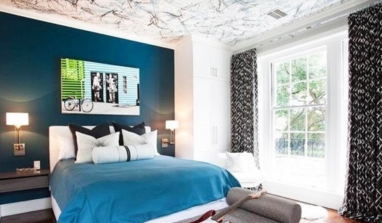 3.臥室背景墻和床飾都以藍色為主,很是唯美呢!