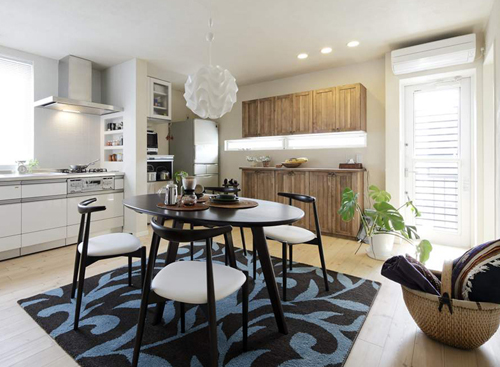 橢圓形的木質(zhì)餐桌,細(xì)膩的木材質(zhì)感,深色系所帶來(lái)的踏實(shí)穩(wěn)重,給人溫和感覺(jué)之余不失優(yōu)雅。印有藍(lán)色花紋的黑色地毯,美觀(guān)大氣。百葉窗,不僅能調(diào)節(jié)室內(nèi)的亮度,還起到了隔音隔熱的效果。灶臺(tái)下方的拉式收納柜,具有防塵作用的同時(shí),還讓餐具的擺放更顯整齊。