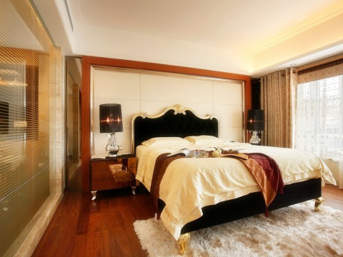 大床的臥室卻不失去溫馨,讓人情不自禁的想安然入睡。地板的格調也很好,毛毯給人輕松的感覺。