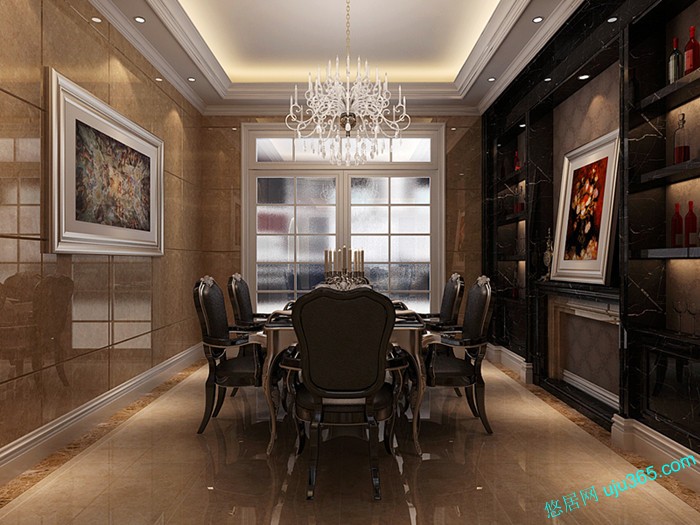 與普通住宅相比,別墅的廚房可以顯示主人的品位,這種品位主要體現(xiàn)在一些有創(chuàng)意的設(shè)計(jì)上,別墅廚房吊柜可以設(shè)計(jì)一些玻璃門或吊格,柜內(nèi)安裝圓杯燈,便于存放收藏品或書(shū)籍。