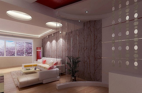 半墻在寬闊的空間中是一個不錯的隔斷方法,特別是必須要有實體依靠的情況下,這種隔斷方式讓空間更有層次感。在半墻上以玻璃馬賽克或者裝飾畫等建材進行裝修,無疑讓空間更加生動。這種半墻隔斷,適合使用在餐廳與客廳的隔斷或者休閑區(qū)域客廳宴客區(qū)的分隔中。